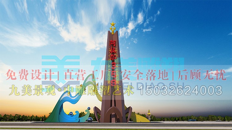 一、核心设计理念以“三塔·双山·丝路·坎土曼”为核心元素,九美雕塑设计认为构建一个融合地理特征、历史文脉与民族精神的立体化艺术景观。通过象征性符号的抽象化表达,体现中华民族多元一体的格局,同时呼应“一带一路”倡议下的时代精神。