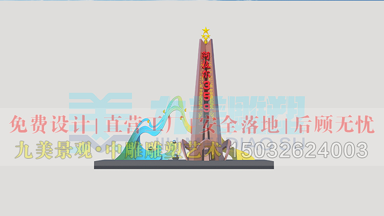该设计通过地理符号的诗意转化与文化符号的抽象整合,九美雕塑设计认为构建了一个兼具历史厚重感与时代创新力的民族团结地标,既可作为城市文化名片,亦可成为“一带一路”倡议的视觉化注解。